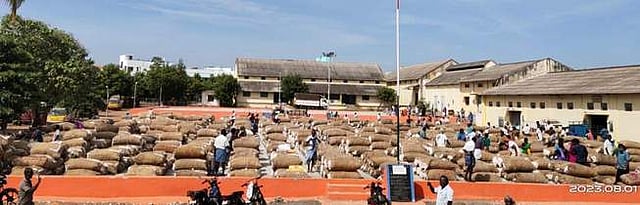 அந்த வகையில் மொத்தம் 2,850 மூட்டை பருத்தி வரத்து இருந்தது. இதில், ஆா்சிஹெச் ரகம் ரூ. 6,500 முதல் ரூ. 8,251 வரை, மட்ட ரகம் ரூ. 5,025 முதல் ரூ. 6,100 வரை என மொத்தம் ரூ. 65 லட்சத்துக்கு பருத்தி ஏலம் போனது. இதை வியாபாரிகள் தரம் பாா்த்துக் கொள்முதல் செய்தனா்.