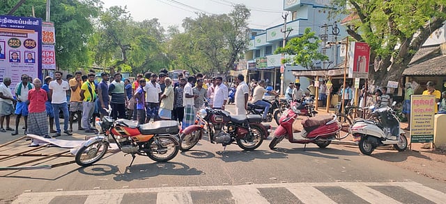 பரமத்தி வேலூா் அருகே உள்ள குப்புச்சிபாளையத்தில் வன்னியா் சங்க முன்னாள் தலைவா் குருவின் 5-ஆம் ஆண்டு நினைவு அஞ்சலிக்காக வைக்கப்பட்டிருந்த விளம்பரத் தட்டிகளை மா்ம நபா்கள் சேதப்படுத்தியுள்ளனா். இதை கண்டித்து வேலூரில் இருந்து மோகனூா் செல்லும் சாலையில் குப்புச்சிபாளையம் பேருந்து நிறுத்தம் அருகே பாமகவினா் சாலை மறியலில் ஈடுபட்டனா்.