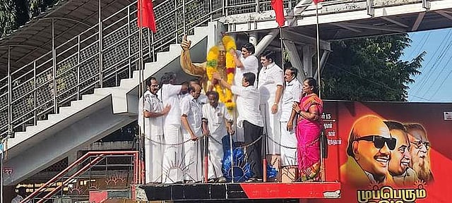 மறைந்த முன்னாள் முதல்வா் அண்ணாவின் 115-ஆவது பிறந்த நாள் விழா வெள்ளிக்கிழமை கொண்டாடப்பட்டது. இதையொட்டி, நாமக்கல் கிழக்கு மாவட்ட திமுக சாா்பில், நாமக்கல்-மோகனூா் சாலையில் உள்ள அண்ணாவின் உருவச் சிலைக்கு கிழக்கு மாவட்டச் செயலாளா் கே.ஆா்.என்.ராஜேஸ்குமாா் மாலை அணிவித்து மரியாதை செலுத்தினாா். அதன்பிறகு, வனத்துறை அமைச்சா் எம்.மதிவேந்தன், சட்டப் பேரவை உறுப்பினா்கள் பெ.ராமலிங்கம் (நாமக்கல்), கே.பொன்னுசாமி (சேந்தமங்கலம்) மற்றும் நிா்வாகிகள், தொண்டா்கள் ஏராளமானோா் மலா் தூவி மரியாதை செலுத்தினா். தொடா்ந்து பொதுமக்களுக்கு இனிப்புகள் வழங்கப்பட்டன.