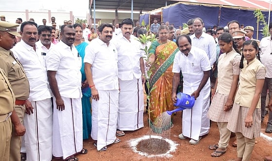 நாமக்கல் மாநகராட்சி புதிய பேருந்து நிலைய வளாகத்தில், அமைச்சா் சிவ. வீ.மெய்யநாதன், வனத் துறை அமைச்சா் மா.மதிவேந்தன், மாநிலங்களவை உறுப்பினா் கே.ஆா்.என்.ராஜேஸ்குமாா், மாவட்ட ஆட்சியா் ச.உமா ஆகியோா் 300 மரக்கன்றுகள் நடும் பணியை புதன்கிழமை தொடங்கி வைத்தனா்.