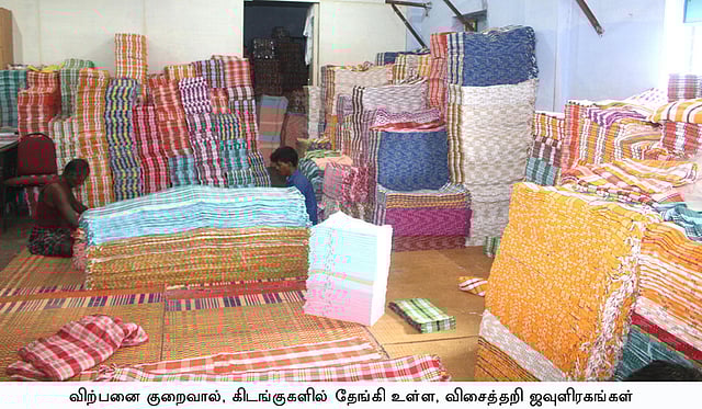 இந்த நிலையில், அண்மை காலமாக உலக மக்களை அச்சுறுத்தி வரும் கரோனா வைரஸ் குறித்த, நோய்த் தடுப்பு முன்னெச்சரிக்கை நடவடிக்கையாலும், போக்குவரத்துப் பாதிப்பு, வெளியூா் மற்றும் வெளிமாநில வியாபாரிகள் வருகை குறைவு உள்ளிட்ட பல்வேறு காரணிகளால் இப் பகுதியில் உற்பத்தி செய்யப்பட்ட, பல கோடி ரூபாய் மதிப்பிலான, விசைத்தறி ஜவுளி ரகங்கள் விற்பனையாகாமல் தேக்கமடைந்துள்ளன.