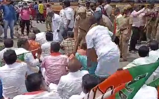 இதனைத் தொடர்ந்து அஸ்தம்பட்டி பிரதான சாலையில் பாரதிய ஜனதா கட்சியினர் திடீர் சாலை மறியலில் ஈடுபட்டனர். இதன் காரணமாக அப்பகுதியில் போக்குவரத்து தடைபட்டது. இரு தரப்பினரையும் காவல்துறையினர் சமாதானப்படுத்தி அழைத்து தனித்தனியாக சிலைக்கு மாலை அணிவிக்க அனுமதி அளித்தனர்.