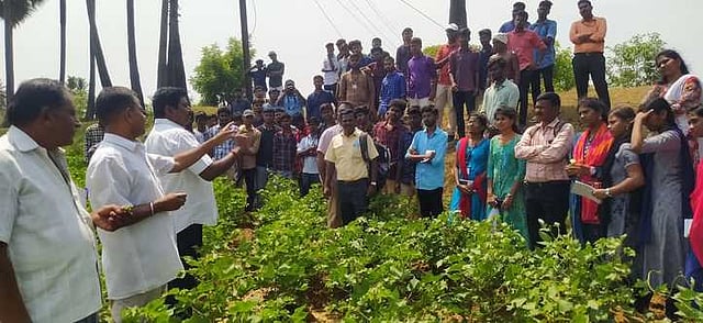அண்ணாமலை பல்கலைக்கழக வேளாண் புல இளங்கலை மாணவா்களுக்கு வீரிய ஒட்டு ரக பருத்தி விதையை உற்பத்தி செய்வது குறித்து ஆத்தூரில் நேரடி செயல் விளக்க பயிற்சி திங்கள்கிழமை அளிக்கப்பட்டது.