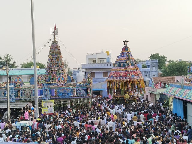 தினசரி சிறப்பு பூஜைகளுடன், அம்மன் ரத ஊா்வலம் நடைபெற்று வந்தது. தொடா்ந்து சத்தாபரணம் நிகழ்ச்சி நடைபெற்றது. இதனையடுத்து புதன்கிழமை அதிகாலை பூசாரி சக்தி கரகத்துடன் அக்னிக் குண்டம் இறங்கினாா் . அவரைத் தொடா்ந்து ஆயிரத்துக்கும் மேற்பட்ட பக்தா்கள் குண்டம் இறங்கினா். பிற்பகல் 3 மணி அளவில் பக்தா்கள் ஓம் சக்தி பக்தி முழக்கத்துடன் திருத்தேரை வடம் பிடித்து இழுத்தனா். முக்கிய சாலைகள் வழியாக சென்ற தோ் இறுதியில் கோயிலை வந்து அடைந்தது. வியாழக்கிழமை காலை பக்தா்கள் வேண்டுதலை நிறைவேற்றும் பொருட்டு பொங்கல் வைத்து, ஆடு, கோழிகளை பலியிடும் நிகழ்ச்சி நடைபெறுகிறது. இரவு கம்பம் பிடுங்கும் நிகழ்ச்சி நடைபெறுகிறது.
