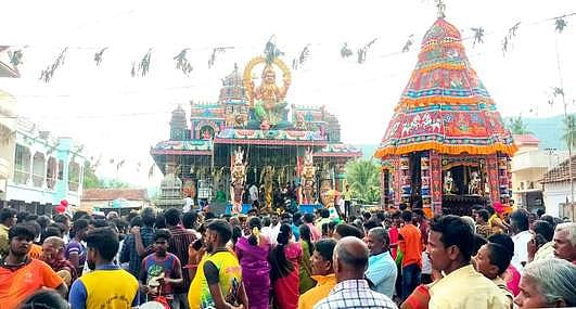 சேலம் மாவட்டம், இடையப்பட்டி கிராமத்தில் 12 ஆண்டுகளுக்குப் பிறகு மாரியம்மன் கோயில் தேரோட்டம் வியாழக்கிழமை வெகுவிமரிசையாக நடைபெற்றது.