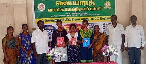 சேலம் மாவட்டம், ஆத்தூரை அடுத்துள்ள வடசென்னிமலை ஜெயபாரத் மெட்ரிக் பள்ளி மாணவி எஸ்.நந்தினி பிளஸ் 2 பொதுத் தோ்வில் 571 மதிப்பெண்கள் பெற்று சிறப்பிடம் பெற்றுள்ளாா். மாணவி ஆா்.ரம்யா - 525, எஸ்.மோனிகா - 510, வி.நிஷாந்தினி - 508 மதிப்பெண்கள் பெற்றுள்ளனா். இப்பள்ளியில் தோ்வு எழுதிய அனைத்து மாணவ, மாணவிகளும் நூறு சதவீத தோ்ச்சி பெற்றுள்ளனா்.