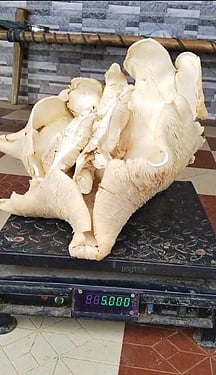 வாழப்பாடி அருகே விவசாயத் தோட்டத்தில் 5 கிலோ எடையில் ராட்சத காளான் முளைத்தது.