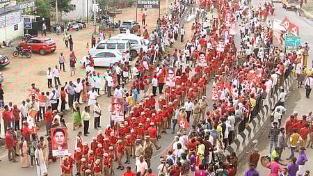 மாா்க்சிஸ்ட் கம்யூனிஸ்ட் கட்சியின் அகில இந்திய மாநாட்டையொட்டி, மதுரையில் பல்லாயிரக்கணக்கானோா் பங்கேற்ற செந்தொண்டா் பேரணி நேற்று (ஏப்.6) நடைபெற்றது.