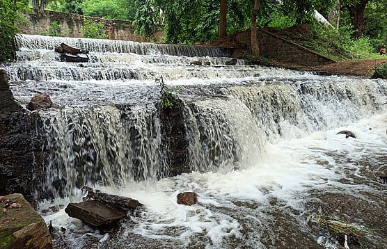 பழனியில் தொடா் மழை காரணமாக அணைகளுக்கு நீா்வரத்து அதிகரித்துள்ள நிலையில், பாலாறு அணைக்கு செல்லும் தண்ணீா் அருவி போல காட்சியளிக்கிறது.