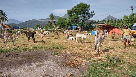 ஒட்டன்சத்திரம் அருகே நடைபெற்று வரும் கால்நடைக் கண்காட்சியில் காங்கேயம் காளைகள்,ஜல்லிக்கட்டு காளைகள் விற்பனைக்காக கொண்டு வரப்பட்டுள்ளன.