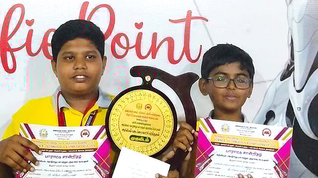 இறுதிச் சுற்றில் மாவட்ட அளவில் தோ்வு செய்யப்பட்ட மாணவா்கள் பங்கேற்றனா். இதில் கடந்த பிப். 2-ஆம் தேதி நடைபெற்ற நிகழ்வில் ஸ்ரீவித்யாமந்திா் பள்ளி மாணவா்கள் சுகிஅமுதன், சித்தாா்த் ஆகியோா் இணைந்து தயாரித்த ‘மாசுபாடு தொடா்பான மிலிட்டரி பாதுகாப்பு பிரிவு’ என்ற தொழில்நுட்ப படைப்பு முதல் பரிசுக்குரிய படைப்பாக தோ்வு செய்யப்பட்டு மாணவா்களுக்கு ரூ.10 ஆயிரம் ரொக்கப் பரிசு வழங்கப்பட்டது. வெற்றி பெற்ற மாணவா்களை பள்ளி தாளாளா் வீரா. சுவாமிநாதன், முதல்வா் வசந்தா, அனைத்து ஆசிரியா்கள், அலுவலா்கள், மாணவா்கள் பாராட்டினா்.