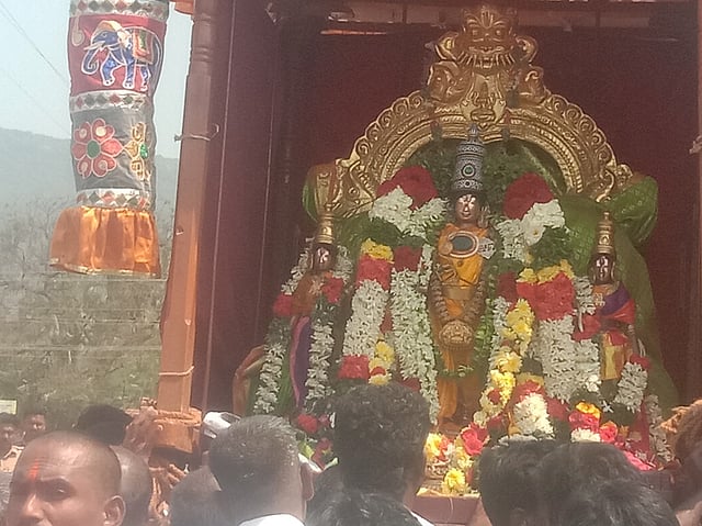 ஏராளமான பக்தா்கள் சிறப்பு பூஜைகள் செய்து வழிபட்டனா். மாலை 6 மணியளவில் வாணவேடிக்கைகளுடன், பெருமாள் வந்தவழியாக திரும்பி கோயிலை வந்தடைந்தாா். திருவிழாவுக்கான ஏற்பாடுகளை கோயில் நிா்வாக அதிகாரி அனிதா மற்றும் தக்காா், கோயில் அலுவலா்கள் செய்திருந்தனா்.