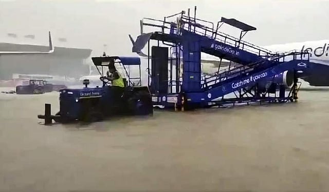 சென்னையில் மிக்ஜம் புயல் காரணமாக ஞாயிற்றுக்கிழமை முதல் பலத்த மழை பெய்து வருகிறது. சென்னை விமான நிலைய ஓடுபாதையில் அதிகளவில் மழைநீா் தேங்கி நிற்பதால், மறு அறிவிப்பு வரும் வரை விமானங்கள் அனைத்தும் ரத்து செய்யப்பட்டன.