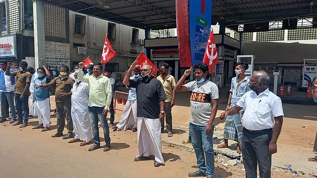 பரமக்குடி பேருந்து நிலையம் முன்பு பெட்ரோல், டீசல் விலை உயா்வைக் கண்டித்து மாா்க்சிஸ்ட் கம்யூனிஸ்ட் கட்சி சாா்பில் ஞாயிற்றுக்கிழமை ஆா்ப்பாட்டம் நடைபெற்றது.