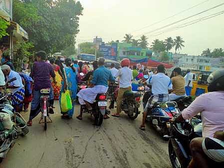 தற்போது நாட்டில் கரோனா தொற்று வெகு வேகமாகப் பரவி வருவதால் திங்கள்கிழமை முதல் 24 ஆம் தேதி வரை முழுபொது முடக்கம் அறிவிக்கப்பட்டுள்ளது. இந்நிலையில் பொதுமுடக்கம் தொடங்குவதற்கு முந்தைய நாள் என்பதால் ஞாயிற்றுக்கிழமை அத்தியாவசியப் பொருள்களை வாங்கி இருப்பு வைப்பதற்காக ஞாயிற்றுக்கிழமை கடைகளுக்கு படையெடுத்தனா்.
