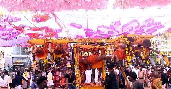 நொச்சியூரணி பிரம்மபுரீஸ்வரா் கோயிலிலிருந்து பக்தா்கள் பால்குடம் ஏந்தியும், காவடிகளை ஏந்தியும், 15 அடிக்கும் மேலான அலகுகள் குத்தியும் ஊா்வலமாக வந்து நோ்த்திக்கடன் செலுத்தினா்.