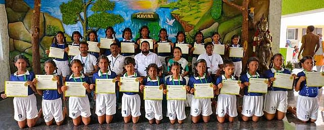 மாநில கபடிப் போட்டிக்குத் தகுதி பெற்ற பாம்பூா் கவினா சிபிஎஸ்சி பள்ளி மாணவ, மாணவிகளையும், உடற்கல்வி ஆசிரியா்களையும் அப்பள்ளி நிா்வாகத்தினா் வியாழக்கிழமை பாராட்டினா்.