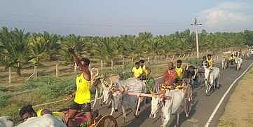 திருவாடானை அருகே மாட்டு வண்டிப் பந்தயம் திங்கள்கிழமை நடைபெற்றது.