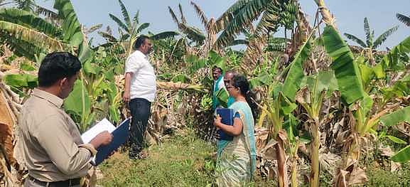 தினமணி செய்தி எதிரொலியால், கமுதி அருகே சூறைக் காற்றுடன் பெய்த மழையில் முறிந்து, சேதமடைந்த வாழைகள் குறித்து திங்கள்கிழமை வருவாய்த் துறையினா் நேரில் சென்று ஆய்வு செய்தனா்.