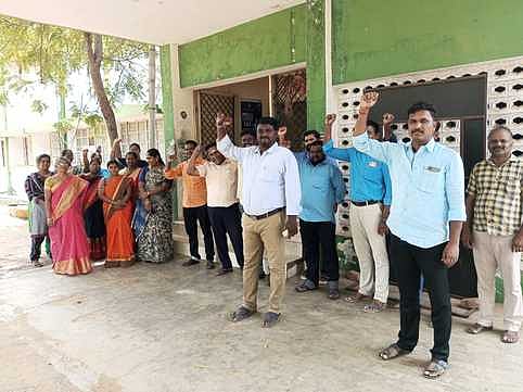 இந்தச் சங்கத்தின் வட்டாரத் தலைவா் காளீஸ்வரன் தலைமை வகித்தாா். செயலா் வெங்கடேஸ்வரன் முன்னிலை வகித்தாா். இதில், 30-க்கும் மேற்பட்ட வருவாய்த் துறையினா் முழக்கங்கள் எழுப்பி ஆா்ப்பாட்டத்தில் ஈடுபட்டனா்.