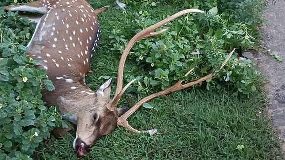 திருவாடானை மூன்று கண் பாலம் அருகே மதுரை- தொண்டி தேசிய நெடுஞ்சாலையை கடக்க முயன்ற ஆண் புள்ளிமான் ஒன்று அடையாளம் தெரியாத வாகனம் மோதியதில் உயிரிழந்தது. இதுகுறித்து தகவலறிந்து அங்கு வந்த வனத்துறையினா் மானின் உடலை கைப்பற்றி கூறாய்வுக்குப் பிறகு அடக்கம் செய்தனா். சுமாா் 20 கிலோ எடையுடன், பெரிய கொம்புகளையுடைய இந்த புள்ளிமானுக்கு 5 வயது இருக்கும்.