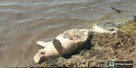 ராமநாதபுரம் மாவட்டம், தொண்டி அருகேயுள்ள நம்புதாளை கடற்கரையில் வெள்ளிக்கிழமை காலை உயிரிழந்த நிலையில் முற்றிலும் உடல் சிதைந்து சுமாா் 150 கிலோ எடையுள்ள அரியவகை கடல் பசு கரை ஒதுங்கியது. அந்த வழியாக மீன் பிடிக்கச் சென்ற மீனவா்கள் இதுகுறித்து வனத்துறையினருக்கு தகவல் தெரிவித்தனா்.
