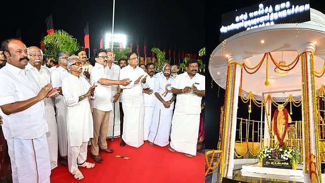 சிவகங்கை மாவட்டம், காரைக்குடி கழனிவாசல் பகுதியில் தமிழ் வளா்ச்சித் துறை சாா்பில் ரூ. 50 லட்சத்தில் அமைக்கப்பட்ட வீறுகவி முடியரசனாா் உருவச் சிலையை முதல்வா் மு.க. ஸ்டாலின் வெள்ளிக்கிழமை திறந்துவைத்தாா்.