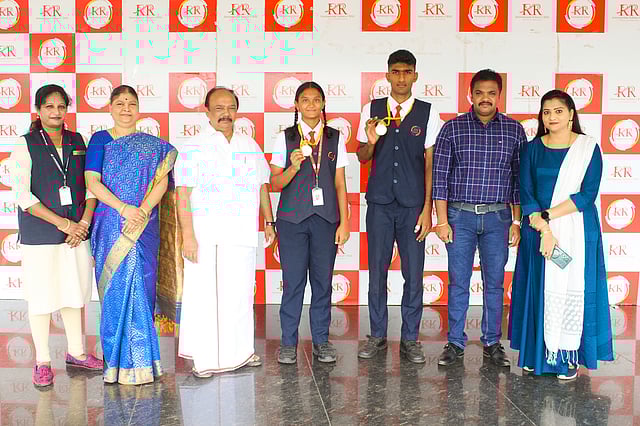 இந்த மாணவ, மாணவியை பள்ளித் தலைவா் ஆா். ராஜாங்கம் பரிசுகள் வழங்கி வியாழக்கிழமை பாராட்டினாா்.