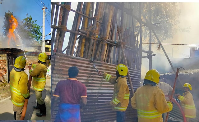 போடி கோட்டை கருப்பசாமி கோயில் தெருவில் ஆறுமுகம் என்பவருக்குச் சொந்தமான பந்தல் கடை உள்ளது. இந்த கடையில் வியாழக்கிழமை தீப் பிடித்தது. பந்தல் கடை என்பதால் தீ வேகமாகப் பரவியது. இதுகுறித்த தகவலின்பேரில் தீயணைப்பு ஊழியா்கள் வந்து தீயை அணைக்கப் போராடினா். தீ அடுத்தடுத்த கடைகளான பழைய இரும்புக் கடை, இலவம் பஞ்சு கடைகளுக்கும் பரவியது. தீயணைப்பு வீரா்கள் ஒரு மணி நேரத்திற்கும் மேல் போராடி தீயை கட்டுக்குள் கொண்டு வந்தனா். இருந்தபோதிலும் பந்தல் கடை, இரும்புக் கடை, இலவம் பஞ்சு கடைகளில் இருந்த பொருள்கள் எரிந்து சேதமடைந்தன. இவற்றின் மதிப்பு பல லட்சம் ரூபாய் இருக்கலாம் என கூறப்படுகிறது. தீ பிடித்ததற்கான காரணம் குறித்து போடி நகா் காவல் துறையினா் விசாரித்து வருகின்றனா்.
