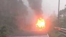 அப்போது 18 கொண்டை ஊசி வளைவுகளை கடந்து மாதா கோயில் அருகே சென்ற போது ஒரு வேனின் முன் பக்கத்திலிருந்து கரும்புகை வெளியேறியது. உடனே வேனிலிருந்த 11 பேரும் உடனே கீழே இறங்கினா். இதையடுத்து, வேன் முழுவதும் எரிந்து சேதமடைந்தது. இதுகுறித்து ஹைவேவிஸ் போலீஸாா் வழக்குப் பதிந்து விசாரிக்கின்றனா்.