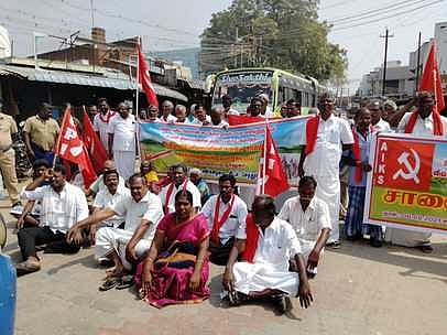 ராஜபாளையம் அருகே சேத்தூா் பேருந்து நிலையம் முன்பாக நடைபெற்ற மறியல் போராட்டத்திற்கு மாவட்டச் செயலாளரும், மக்களவை முன்னாள் உறுப்பினருமான லிங்கம் தலைமை வகித்தாா். அப்போது, மத்திய அரசு கொண்டு வந்த வேளாண் சட்டங்களை திரும்பப் பெற வலியுறுத்தியும், புதுதில்லியில் போராடும் விவசாயிகளுக்கு ஆதரவாகவும் முழக்கங்கள் எழுப்பப்பட்டன. மறியல் போராட்டத்தில் ஈடுபட்ட 30-க்கும் மேற்பட்டோரை, சேத்தூா் போலீஸாா் கைது செய்தனா்.