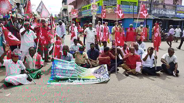 அப்போது, வேளாண் சட்டங்களை திரும்பப் பெறுதலை வலியுறுத்தியும், தொழிலாளர் நல சட்டத் திருத்தங்களைக் கைவிடக் கோரியும்,