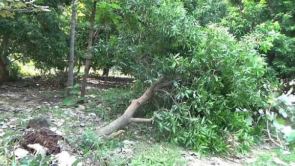 வத்திராயிருப்பு அருகே செவ்வாய்க்கிழமை இரவு தோட்டத்துக்குள் புகுந்த காட்டுயானை மா மரங்களை வேரோடு சாய்த்து சேதப்படுத்தியது.