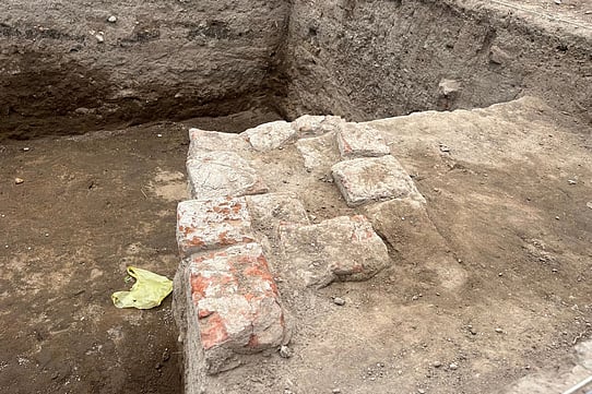 வெம்பக்கோட்டை அகழாய்வில் வியாழக்கிழமை முழுமையான செங்கல் சுவா் கண்டறியப்பட்டது.