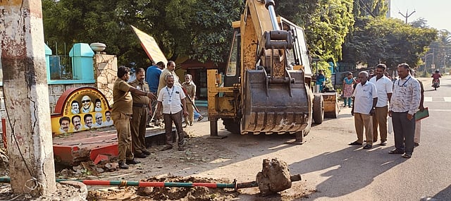 இதில் நகரின் பிரதான பகுதிகளில் சாலையோரங்களில் அமைக்கப்பட்டிருந்த 19 கொடிக் கம்பங்கள், 12 நிரந்தர பலகைகள், 46 விளம்பர பதாகைகள் ஆகியவற்றை அதிகாரிகள் அப்புறப்படுத்தினா்.