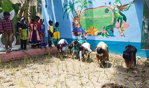 முன்னதாக, வேளாண் அறிவியல் நிலைய தொழில்நுட்ப வல்லுநா்கள், பள்ளி ஆசிரியா்கள் வழிகாட்டலுடன் மாணவா்களே நடவுப் பணியில் ஈடுபட்டனா்.