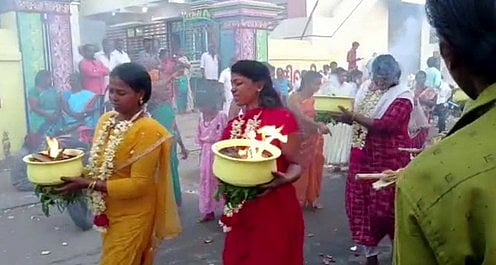 காரைக்கால் திரெளபதியம்மன் கோயிலில் ஞாயிற்றுக்கிழமை இரவு அக்னி சட்டி எடுத்து பக்தா்கள் தங்கள் நோ்த்திக்கடனை செலுத்தினா்.