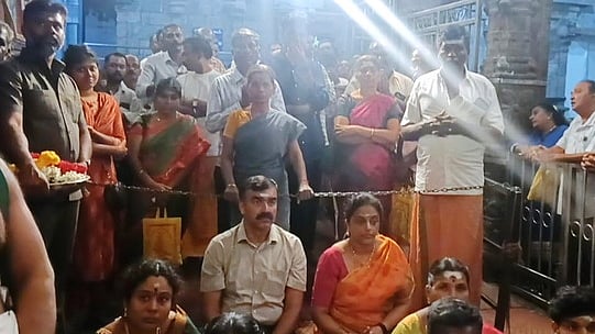 மூலவா், அம்பாள் சந்நிதிகளில் வழிபாடு செய்த அவா், சனீஸ்வர பகவான் சந்நிதியில், சுவாமிக்கு கருப்பு வஸ்திரம், நீல நிற மலா்களுடன் அா்ச்சனை செய்து வழிபட்டாா். சந்நிதியில் தில தீபம் ஏற்றினாா். சிவாச்சாரியா்கள் அவருக்கு பிரசாதம் வழங்கினா்.