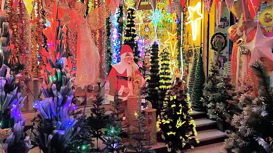 கிறிஸ்துமஸ் தினத்தையொட்டி காரைக்காலில் ஆலயம், வீடுகள் உள்ளிட்டவற்றில் குடில் அமைத்தும், நட்சத்திர விளக்குகள் கட்டியும் மக்கள் கொண்டாட்டத்தில் ஈடுபட்டுள்ளனா்.