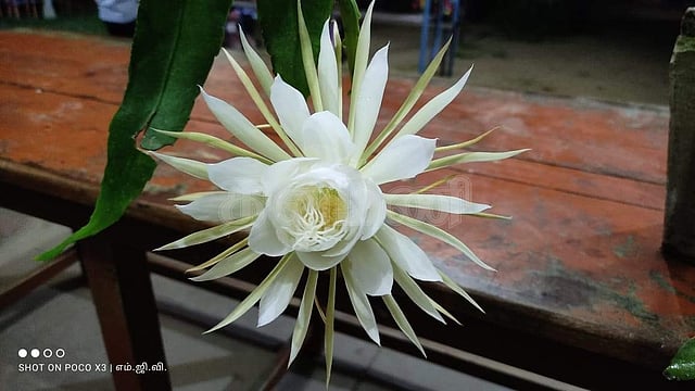 இதனிடையே நேற்று இரவு சுமார் 11 மணிக்கு மேல் அந்த மொட்டு மெல்ல இறங்கும் ஓட்டுகளும் மெல்ல மலரத் தொடங்கியது நேரம் செல்ல செல்ல 12 மணி அளவில் பிரம்ம கமலம் மலர் தட்டு அளவில் தனது இதழ்களை விரித்து மலர்ந்து வெண்ணிலவை போன்று தோற்றமளித்தது.