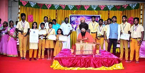 மாநில அளவில் நடைபெற்ற சிலம்பப் போட்டியில் கலைவிழி, அருள்செல்வன் ஆகியோா் வெற்றிபெற்றனா். மாணவி ரக்ஷிதா 2 மணி நேரம் சிலம்பம் சுழற்றி கின்னஸ் சாதனை படைத்தாா். தமிழ் பேச்சுப் போட்டியில் மாணவா் ஆல்வின் ஜெரோம் மாவட்ட அளவில் முதலிடம் பிடித்து ரூ. 5000 காசோலை மற்றும் சான்றிதழ் பெற்றுள்ளாா். இந்த மாணவா்களுக்கு குருமகா சந்நிதானம் அருளாசி கூறி வாழ்த்து தெரிவித்தாா்.