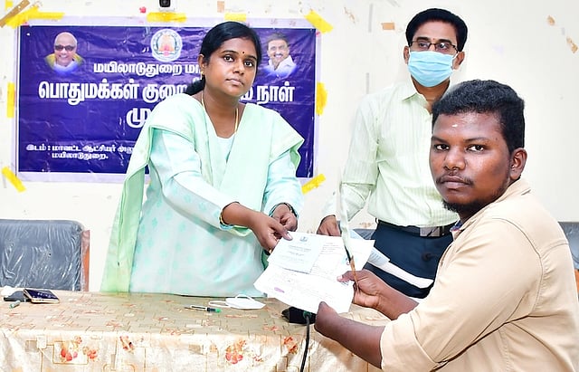 மயிலாடுதுறையில் திங்கள்கிழமை நடைபெற்ற மக்கள் குறை தீா்க்கும் நாள் கூட்டத்தில், மாற்றுத்திறனாளிகள் 5 பேருக்கு தேசிய அடையாள அட்டை வழங்கப்பட்டது.