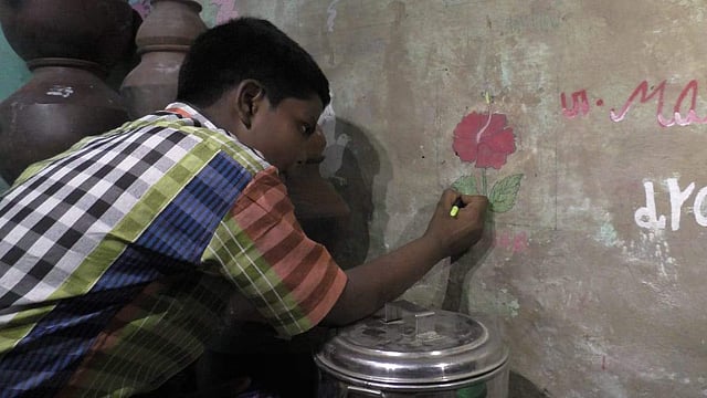 நாகை மாவட்டம் சீர்காழியை அடுத்த குருமானங்குடி கிராமத்தை சேர்ந்தவர்கள் கணேசன்- மாரியம்மாள் தம்பதி. விவசாய கூலி வேலைகளை செய்து வரும் இவர்களில் கணேசன் மாற்றுத்திறனாளி ஆவார். கரோனா ஊரடங்கால் வேலைவாய்பு இன்றி வீட்டிலேயே முடங்கியுள்ளனர். இத்தம்பதியின் இளையமகன் மாரிமுத்து அருகில் உள்ள வைத்தியநாதபுரம் அரசு உயர்நிலைப்பள்ளியில் 6 ஆம் வகுப்பு படித்து வருகிறான். தற்போதைய கரோனா ஊரடங்கு விடுமுறையை பயனுள்ளதாக மாற்ற நினைத்த மாணவர் மாரிமுத்து தன் ஓவிய திறமையை வளர்க்க முடிவு செய்தார்.