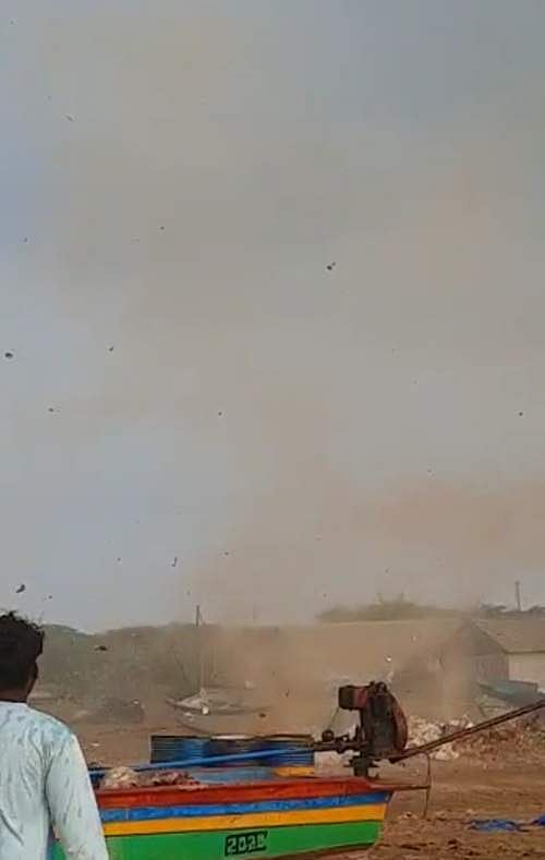 நாகை மாவட்டம் வேதாரண்யம் அடுத்த கோடியக்கரை மீன்பிடித்துறை பகுதிக்கு வந்த காற்றுச் சுழற்சி மக்களை அச்சமடைய செய்தது.