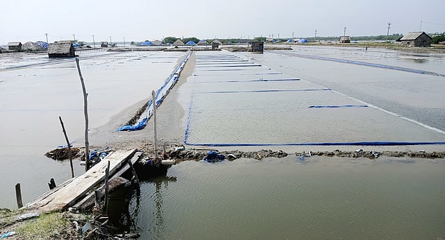 உப்பு பாத்திகளில் தேங்கிய மழைநீா்:
