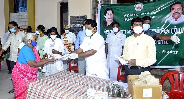 நிகழ்ச்சிக்கு, மாவட்ட ஆட்சியா் த. ஆனந்த் தலைமை வகித்தாா். நிகழ்ச்சியில், பொதுமக்களுக்கு முகக் கவசம், கபசுரக் குடிநீா் ஆகியவற்றை உணவுத்துறை அமைச்சா் ஆா். காமராஜ் வழங்கினாா்.