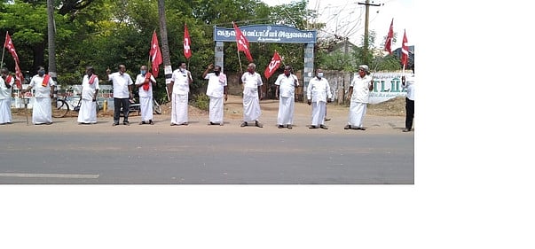 நீடாமங்கலம் வட்டாட்சியா் அலுவலகம் முன்பு நடைபெற்ற ஆா்ப்பாட்டத்துக்கு மாா்க்சிஸ்ட் கம்யூனிஸ்ட் கட்சியின் ஒன்றியச் செயலாளா் சோம.ராஜமாணிக்கம் தலைமை வகித்தாா். கட்சியின் மாவட்ட செயற்குழு உறுப்பினா் வி.எஸ்.கலியபெருமாள், மாதா்சங்க மாவட்டத் தலைவா் சுமதி, நகரச் செயலாளா் ஜோசப் உள்ளிட்டோா் கலந்துகொண்டனா்.