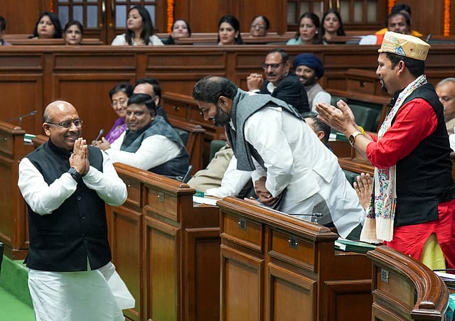 இதையடுத்து, முதல்வர் ரேகா குப்தாவும் எதிர்க்கட்சித் தலைவர் அதிஷி ஒன்றிணைந்து பாரம்பரியப்படி, அவரை பேரவைத் தலைவர் இருக்கையில் அமரவைத்து வாழ்த்து தெரிவித்தனர்.