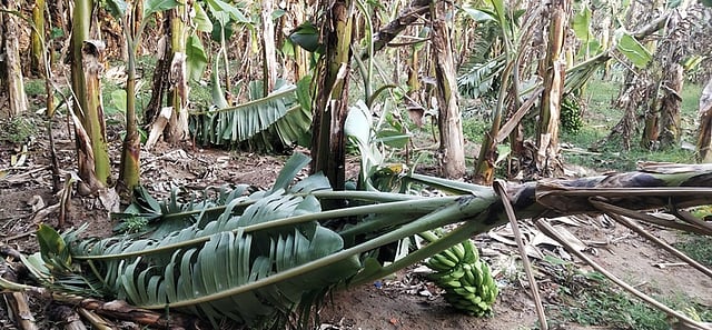 விவசாயிகளும் பெருமளவில் நஷ்டம் ஏற்பட்டுள்ளது. கரோனா நோய்த்தொற்று பொது முடக்கத்தால் விவசாயம் பாதிக்கப்பட்டுள்ளது. சூறைக்காற்று பாதிப்பால் விவசாயிகளின் வாழ்வாதாரத்தை நிலைகுலையச் செய்துள்ளது. எனவே, வாழை விவசாயிகளுக்கு அரசு உரிய நிவாரணம் வழங்க வேண்டும் என்றாா் அவா்.