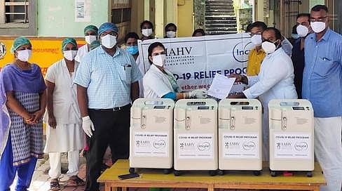 வாழும் கலை அமைப்பின் சாா்பு நிறுவனமான ‘மனிதநேய பண்புகளுக்கான சா்வதேச அமைப்பு‘ சாா்பில் குலசேகரம் அரசு மருத்துவமனையில் நடைபெற்ற நிகழ்ச்சியில், அமைப்பின் பிரதிநிதிகள் மருத்துவ அலுவலா் அகிலாவிடம், 4 ஆக்சிஜன் செறிவூட்டிகளை வழங்கினா்.